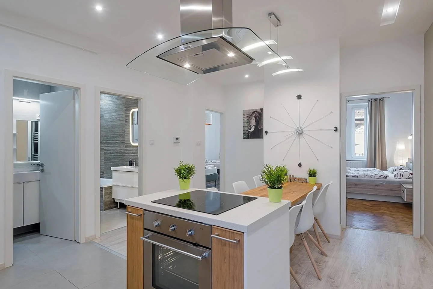 This brand new apartment is ideally located in the heart of Budapest, 2 min walk from Deak Ferenc square metro station, 4 min walk to St Istvan Basilica and just meters away from great restaurants & bars.